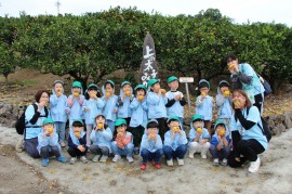 園の様子 みかん狩り 2025年11月6日(木) きりん・ぞう組 毎年お世話になっているお芋畑が今年は不作の為、みかん狩りに行ってきました。小高い山を小さな足で1歩1歩頑張って登りました!山頂では、みかんの木になっているみかんを自分たちで収穫し、その場で頂きました。採れたてのみかんはとっても美味しかったようで、みかんが苦手な子も「美味しい!」と言って食べていました。山の途中にあるコスモス畑も、綺麗でした。 もどる