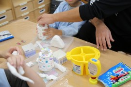 園の様子 保育参加&お店屋さんごっこ 2025年11月22日(土) 今年度は各クラスで親子参加型行事として「保育参加」を行いました。小麦粉粘土やスライム、リズム&ゲーム遊び、花瓶作り、写真たて作りと様々な活動を楽しんでいました。保育参加の後は、お店屋さんごっこへ。きりん・ぞう組さんにはお店番もおうちの方と一緒に参加してもらいました。沢山のご参加、ありがとうございました。 もどる