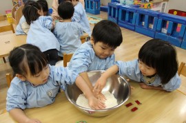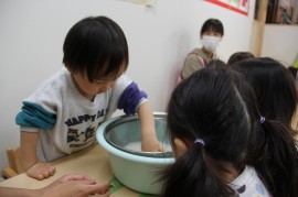 園の様子 食育活動 ~もち米を触ってみよう~ 2025年12月10日(水) ひよこ・りす・ぱんだ組 0~2歳児クラス(ひよこ・りす・ぱんだ組)では、食育活動として、もち米をさわる体験をしていました。「コレ、なんだろう?」初めて触るもち米に、興味深々の子ども達。視覚・触覚・嗅覚・聴覚、様々な感覚を働かせていました。明日は、もち米を使って3~5歳児クラスさんがお餅つきを体験します! もどる